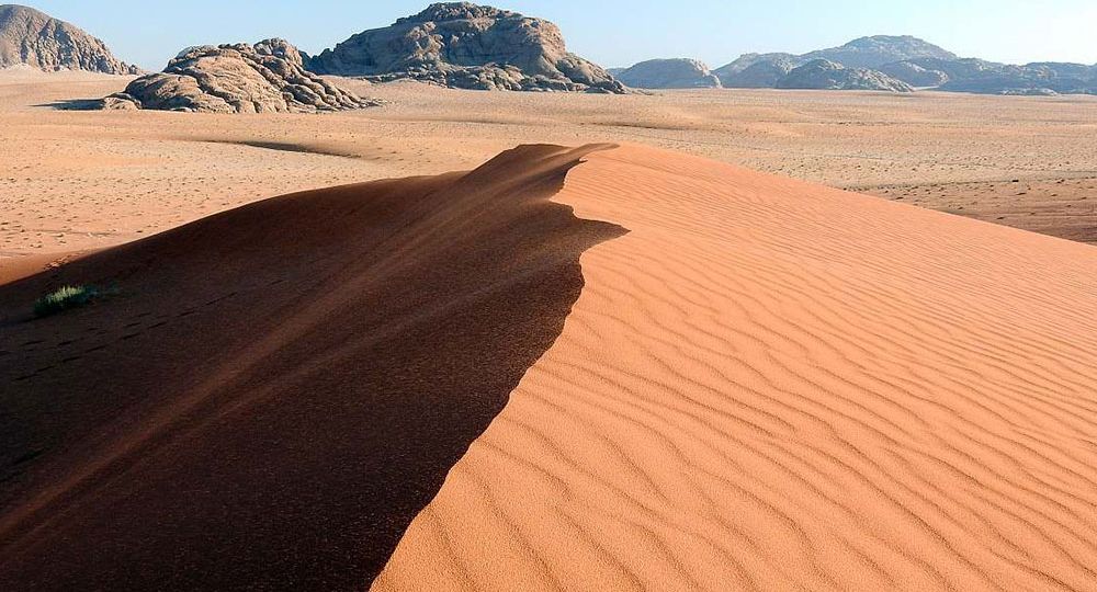 Die roten Sandsteinformationen, zerklüftete und zerrissene Gebirgszüge begleiten Sie auf dem Weg ins Wadi Rum, dem Wüstental der Beduinen um mit dem Jeep  dieses Naturereignis hautnah zu erleben. .Abendessen und Übernachtung.